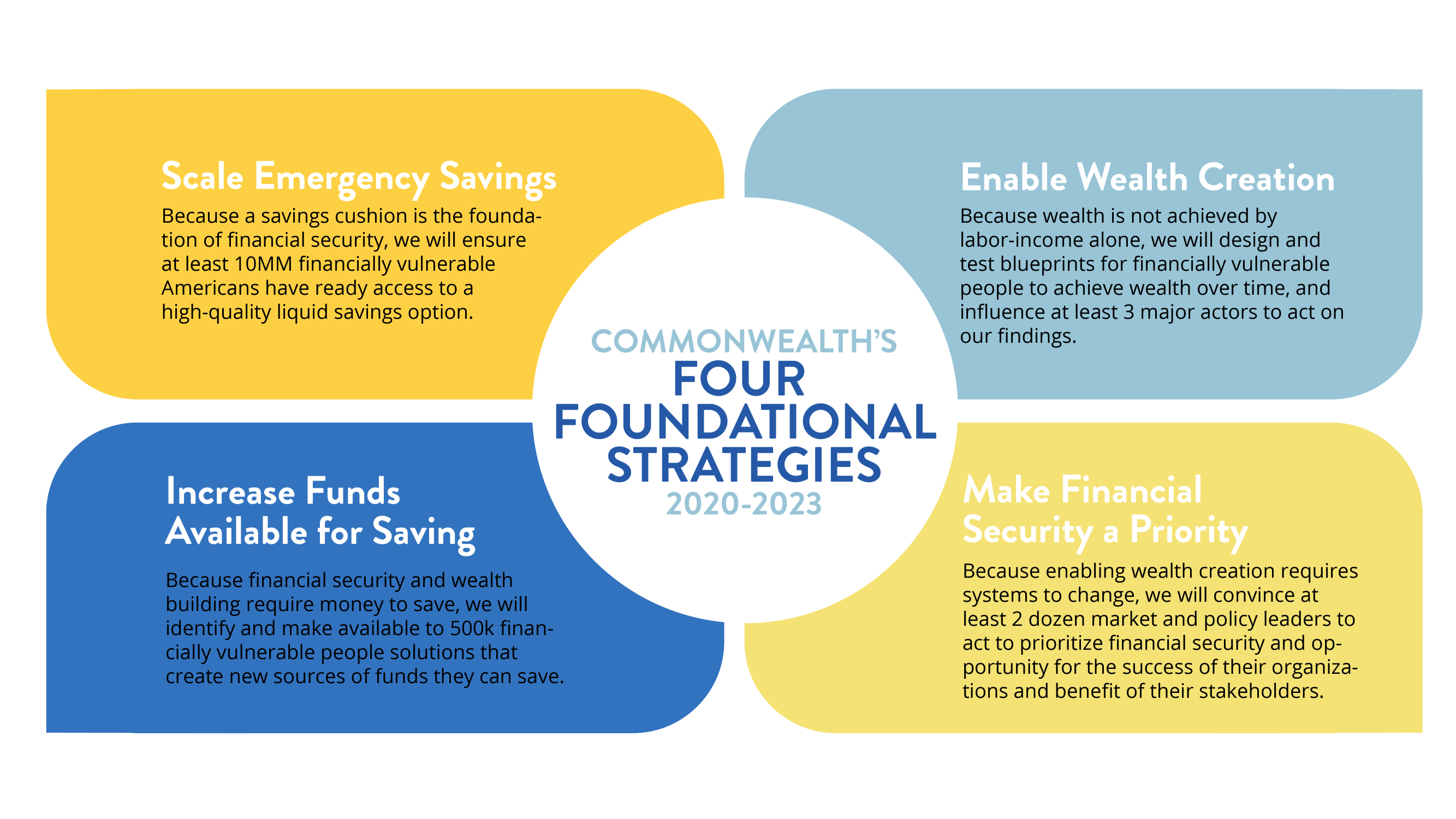 As Commonwealth enters our third decade, I’m proud and excited to share our renewed vision and goals for the coming three years. By 2023, we’ll make decisive progress toward an America where wealth is possible for everyone—especially those who face the greatest barriers to achieve it—by transforming the financial landscape for 10 million people living on LMI.