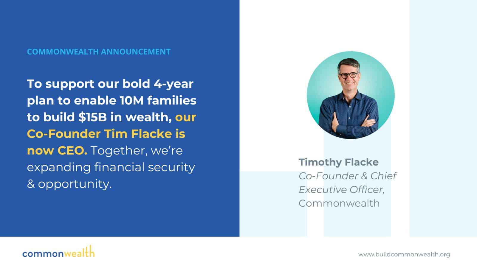 As we continue to make progress in 2024, we’ve seen significant strides in financial security and wealth creation through benefits in the workplace, new investor pathways, and harnessing AI. To support this momentum, Timothy Flacke, Commonwealth’s Co-Founder, now serves as Chief Executive Officer, reinforcing our commitment to equitable financial resilience and long-term wealth.