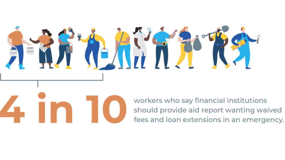 Four in ten workers who say financial institutions should provide aid report wanting waived fees and loan extensions in an emergency.