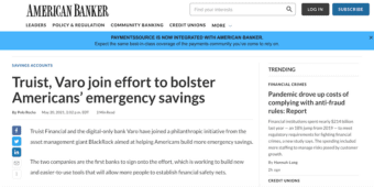 Truist, Varo join effort to bolster Americans’ emergency savings