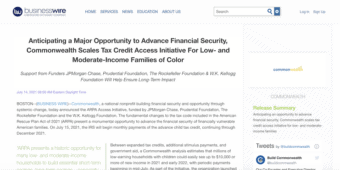 Business Wire: Anticipating a Major Opportunity to Advance Financial Security, Commonwealth Scales Tax Credit Access Initiative For Low- and Moderate-Income Families of Color