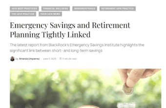 401(k) Specialist shared findings from the BlackRock Emergency Savings Initiative Impact and Learnings Report.