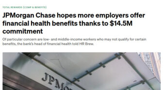 HR Brew reports on JPMorganChase and their philanthropic efforts focused on financial health, including a $7M commitment to “Benefits for the Future,” Commonwealth’s research initiative exploring financial benefits designed for workers earning low-to-moderate incomes.