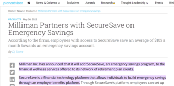 Milliman Partners with SecureSave on Emergency Savings