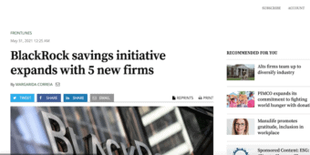 Pensions & Investments: BlackRock Savings Initiative Expands with 5 New Firms